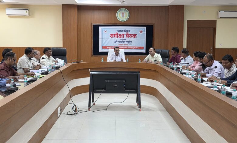 अम्बिकापुर, 18 अप्रैल 2026/ कलेक्टर  अजीत वसंत की अध्यक्षता में आज जिला स्तरीय स्वास्थ्य विभाग की बैठक कलेक्ट्रेट सभाकक्ष में संपन्न हुई। बैठक में कलेक्टर ने जिले की स्वास्थ्य अधोसंरचना, मानव संसाधन और राष्ट्रीय स्वास्थ्य मिशन के अंतर्गत संचालित योजनाओं की बिंदुवार समीक्षा की।
