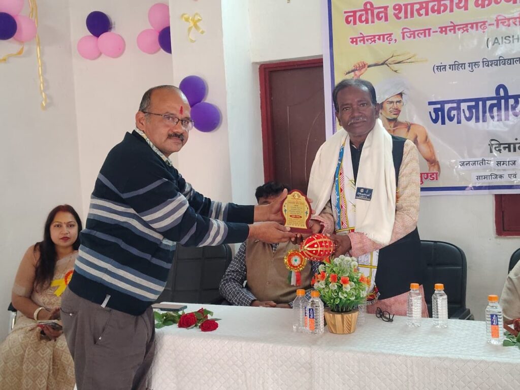 कार्यक्रम की अध्यक्षता डॉ. राम किंकर पाण्डेय, प्राचार्य—नवीन शासकीय कन्या महाविद्यालय मनेन्द्रगढ़, ने की। अपने प्रेरणादायक उद्बोधन में उन्होंने कहा कि जनजातीय समाज का गौरवशाली इतिहास हमें सिखाता है कि सांस्कृतिक विविधता किसी भी राष्ट्र की वास्तविक शक्ति होती है। उन्होंने छात्राओं को जनजातीय समाज की परंपराओं, उनकी जीवन शैली और आध्यात्मिक मूल्यों को शोध और अध्ययन का महत्वपूर्ण विषय बनाने की सलाह दी।