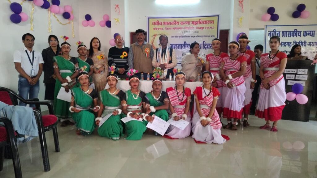 एमसीबी/23 नवम्बर 2025/ नवीन शासकीय कन्या महाविद्यालय मनेन्द्रगढ़ में जनजातीय गौरव दिवस के अवसर पर एक भव्य एवं सारगर्भित व्याख्यान कार्यक्रम का आयोजन किया गया। कार्यक्रम का मुख्य विषय “जनजातीय समाज का गौरवशाली अतीत: ऐतिहासिक, सामाजिक एवं आध्यात्मिक योगदान” रहा, जिसके माध्यम से जनजातीय समुदाय की आदिम संस्कृति, स्वाभिमान की परंपरा, राष्ट्रनिर्माण में उनकी महत्वपूर्ण भूमिका तथा सामाजिक समरसता पर विस्तृत चर्चा की गई।