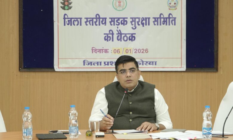कोरबा 06 जनवरी 2026/ जिले में सड़क सुरक्षा को सुदृढ़ करने और यातायात व्यवस्था को और अधिक सुरक्षित व सुगम बनाने के उद्देश्य से कलेक्टर कुणाल दुदावत की अध्यक्षता में कलेक्ट्रेट सभाकक्ष में जिला स्तरीय सड़क सुरक्षा समिति की बैठक आयोजित की गई। बैठक में सड़क दुर्घटनाओं की रोकथाम, यातायात सुगमता तथा सड़क मरम्मत व सुधार संबंधी विषयों पर गहन समीक्षा की गई। उन्होंने अधिकारियों को दुर्घटनाजन्य स्थानों पर प्रभावी सुधारात्मक कदम उठाने के निर्देश दिए ।