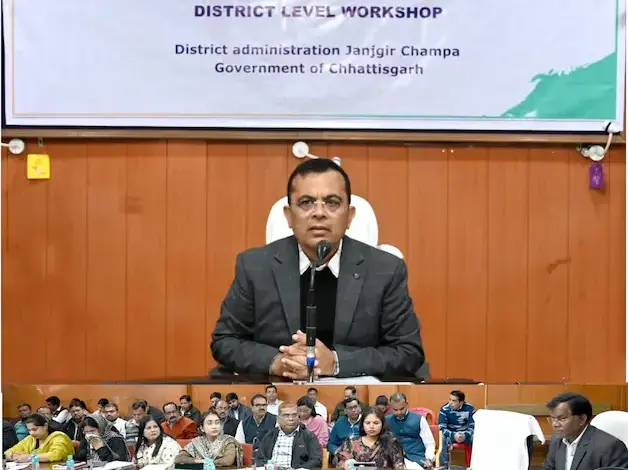 जांजगीर-चांपा/ सुशासन सप्ताह के तहत जिला स्तरीय कार्यशाला का आयोजन कलेक्टर जन्मेजय महोबे की अध्यक्षता में कलेक्टोरेट सभाकक्ष में किया गया। जिले में 19 से 25 दिसंबर तक सुशासन सप्ताह मनाया जा रहा है, जिसका उद्देश्य सरकारी कामकाज को लोगों के लिए अधिक आसान और पारदर्शी बनाना है। जिले में आयोजित सुशासन सप्ताह के अंतर्गत कार्यशाला को संबोधित करते हुए कलेक्टर ने कहा कि शासन की मंशा के अनुरूप आम नागरिकों को पारदर्शी, जवाबदेह और समयबद्ध सेवाएं प्रदान करना प्रशासन की सर्वाेच्च प्राथमिकता है। उन्होंने अधिकारियों और कर्मचारियों से कहा कि वे जनसमस्याओं के समाधान में संवेदनशीलता और तत्परता से निराकरण करें।