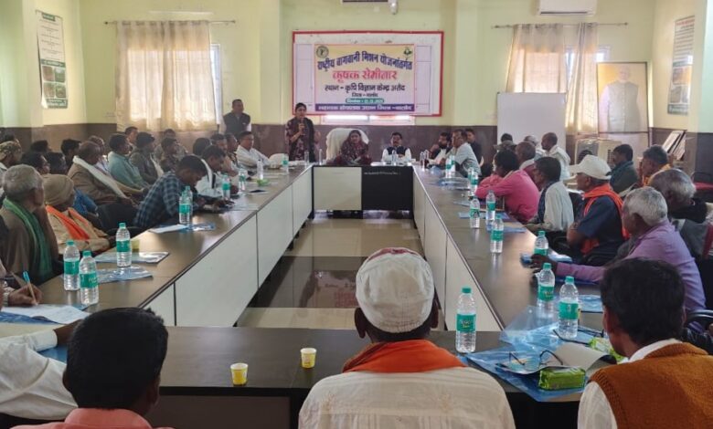 बालोद।राष्ट्रीय बागवानी मिशन योजनांतर्गत उद्यानिकी विभाग के द्वारा कृषि विज्ञान केन्द्र अरौद में घटक कृषक संगोष्ठी के तहत बालोद जिले के पाँचों विकासखण्डों के 100 कृषकों का फसल चक्र परिवर्तन के संबंध में संगोष्ठी का आयोजन किया गया।