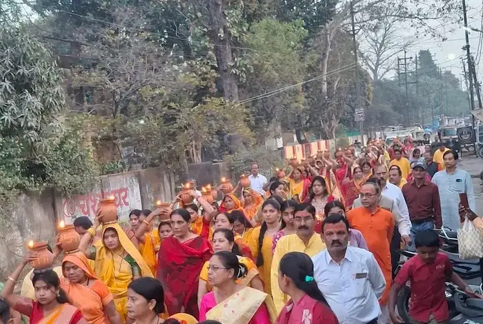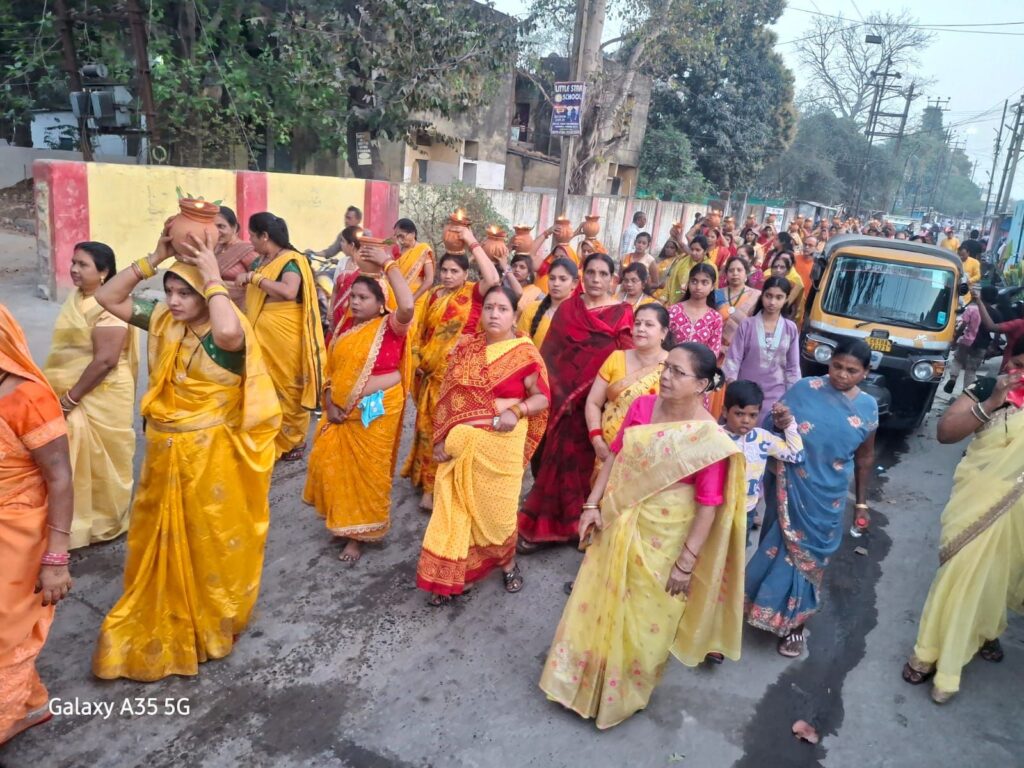 निगम कालोनी स्थित महामृत्युंजय मंदिर से निकली भव्य कलश यात्रा