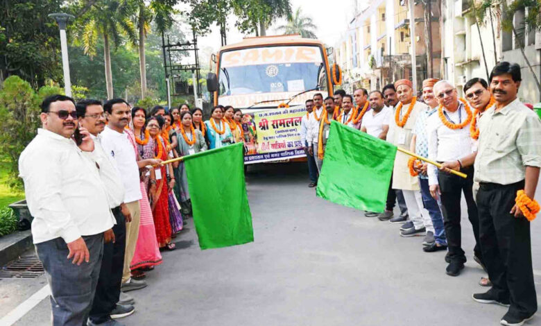छत्तीसगढ़ सरकार की महती योजना श्रीरामलला दर्शन योजना के अंतर्गत प्रदेश के नागरिकों को पवित्र अयोध्याधाम ले जाकर भगवान श्रीरामलला जी के दर्शन प्रतिमाह कराए जा रहे हैं, जिसका सम्पूर्ण व्यय शासन द्वारा वहन किया जाता है। इसी कड़ी में इस माह भी कोरबा से 35 तीर्थयात्रियों का दल श्रीरामलला दर्शन हेतु अयोध्याधाम के लिए रवाना हुआ, यह दल बस के माध्यम से बिलासपुर के उस्लापुर रेलवे स्टेशन पहंुचा, वहॉं से विशेष ट्रेन द्वारा तीर्थयात्री अयोध्याधाम पहुंचकर श्रीरामलला जी के दर्शन का पुण्य लाभ प्राप्त करेंगे। मेयर इन काउंसिल सदस्य हितानंद अग्रवाल, फिरतराम साहू, ममता यादव आदि ने तीर्थ यात्री बस को हरी झण्डी दिखाई एवं यात्रियों को तिलक लगाकर व पुष्पमाला पहनाकर उन्हें शुभकामनाएं व बधाईयॉं देते हुए अयोध्याधाम के लिये रवाना किया। इस मौके पर पार्षदों ने कहा कि यह सौभाग्य का विषय है कि प्रभु श्रीरामलला के दर्शन हेतु जा रहे श्रद्धालुजनों को यात्रा पर रवाना करने का पवित्र अवसर आज प्राप्त हुआ है, उन्होने कामना करते हुए कहा कि ईश्वर उनकी यात्रा को मंगलमय करें तथा श्रद्धालुजन रामलला के चरणों का दर्शन कर पुण्य लाभ अर्जित करें। इस अवसर पर तीर्थयात्रियों ने श्रीरामलला दर्शन योजना की मुक्तकंठ से प्रशंसा करते हुए राज्य सरकार के प्रति अपना आभार व्यक्त किया।
