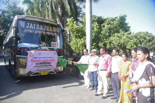 अम्बिकापुर 10 अप्रैल 2026/महिला एवं बाल विकास विभाग के द्वारा मिशन सशक्तिकरण केंद्र के समन्वय से दिशा दर्शन भ्रमण कार्यक्रम अंतर्गत आज जिले की स्व-सहायता समूहों की 80 महिलाओं और विभागीय अधिकारी-कर्मचारियों का दल झारखंड राज्य के गुमला जिले के विकास भारतीय संस्थान विशुनपुर के लिए रवाना हुआ है। कलेक्ट्रेट परिसर से नगर निगम सभापति श्री हरिमन्दर सिंह टिन्नी ने भ्रमण बस को हरी झंडी दिखाकर गंतव्य के लिए रवाना किया।