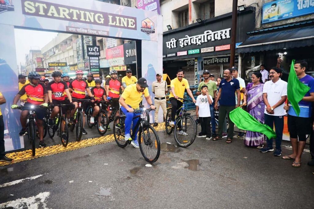 कोरबा 04 अक्टूबर 2025।आयुक्त आशुतोष पाण्डेय की पहल पर कोरबा में पहली बार 53 किलोमीटर लंबे साइकिल थान का ऐतिहासिक आयोजन किया गया। महापौर संजूदेवी राजपूत एवं जिला पंचायत के सीईओ दिनेश कुमार नाग ने टीपीनगर चौक से साइकिल थान को हरी झण्डी दिखाकर रवाना किया। साइकिल थान में आयुक्त आशुतोष पाण्डेय स्वयं प्रतिभागी बने, वहीं आयुक्त श्री पाण्डेय सहित कुल 36 प्रतिभागियों ने काफी प्वाइंट की वादियों को फतह किया, जबकि कुल 75 प्रतिभागियों ने ’’ थान ’’ में भाग लिया था, साइकिल थान की वापसी पर निगम कार्यालय साकेत में आयोजित कार्यक्रम में महापौर श्रीमती राजपूत ने विजेताओं को पुरस्कृत व सम्मानित किया।