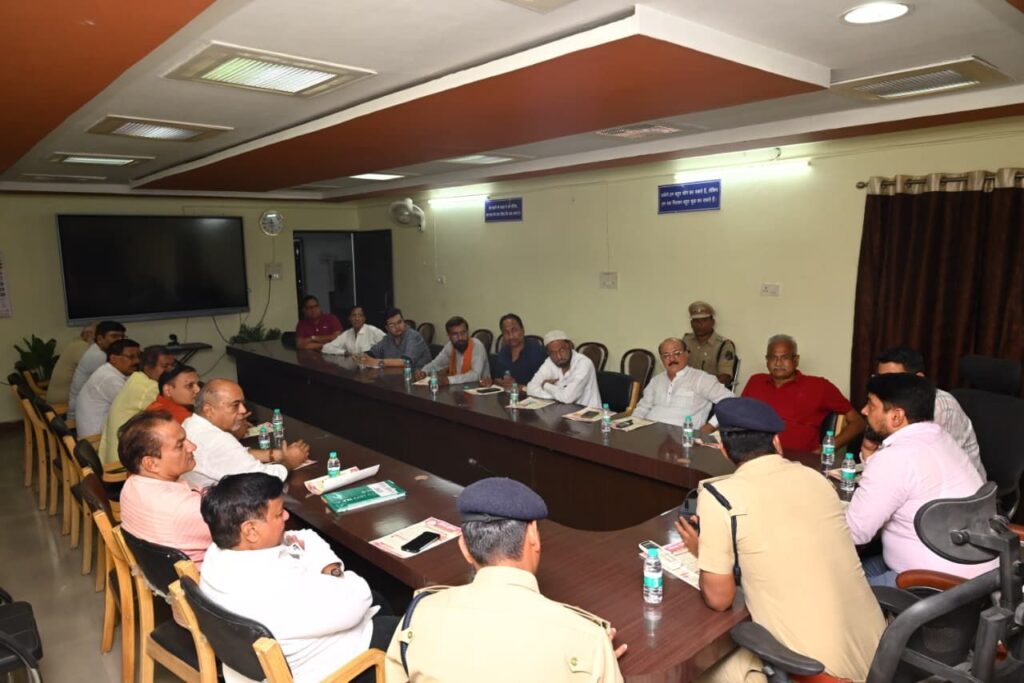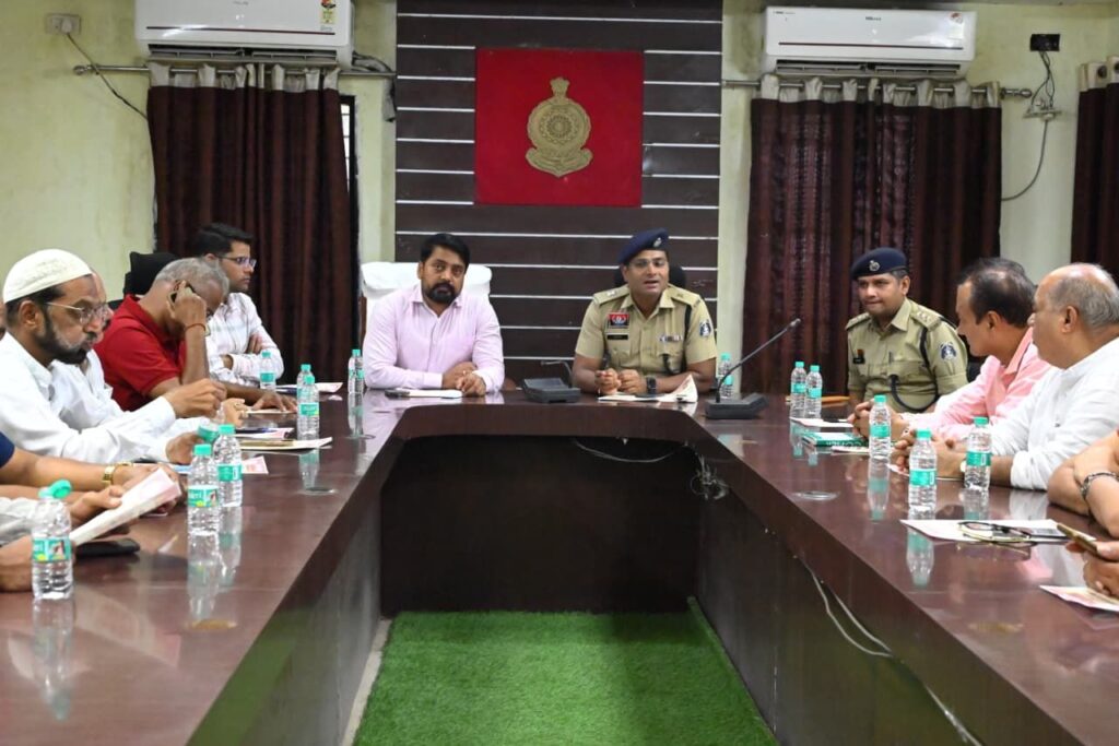 इसी क्रम में पुलिस अधीक्षक कार्यालय के सभागार में चैंबर ऑफ कॉमर्स के पदाधिकारियों एवं गणमान्य नागरिकों के साथ बैठक आयोजित की गई। बैठक में—