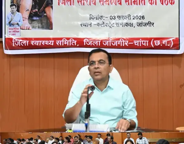 जांजगीर-चांपा 02 फरवरी 26/ राष्ट्रीय फाइलेरिया उन्मूलन कार्यक्रम अंतर्गत सामूहिक दवा सेवन गतिविधि 10 से 25 फरवरी 2025 तक जिले के विकासखण्ड बलौदा में आयोजित किया जाएगा। इस संबंध में कलेक्टर जन्मेजय महोबे की अध्यक्षता जिला चिकित्सालय जांजगीर के सभाकक्ष में बैठक आयोजित किया गया। कलेक्टर श्री महोबे ने कार्यक्रम से संबंधित सभी विभागों को आपसी समन्वय स्थापित कर शत-प्रतिशत हितग्राहियों को दवा सेवन सुनिश्चित कराने निर्देश दिए गए। बैठक में जिला पंचायत सीईओ गोकुल रावटे, अपर कलेक्टर ज्ञानेन्द्र सिंह,संयुक्त कलेक्टर संदीप सिंह ठाकुर, संयुक्त कलेक्टर स्निग्धा तिवारी, मुख्य चिकित्सा एवं स्वास्थ्य अधिकारी डॉ. अनिता श्रीवास्तव, सिविल सर्जन सह मुख्य अस्पताल अधीक्षक डॉ. एस. कूजुर, जिला कार्यक्रम प्रबंधक उत्कर्ष तिवारी, सहित संबंधित अधिकारी-कर्मचारी उपस्थित रहे।