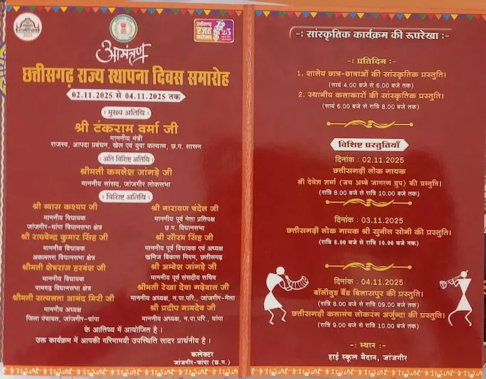 02 से 04 नवम्बर तक शासकीय हाई स्कूल मैदान जांजगीर में होंगे विविध कार्यक्रम
