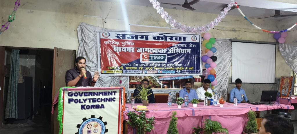 कोरबा।समय-समय पर आमजन को जागरूक करने हेतु कोरबा पुलिस द्वारा विभिन्न अभियान संचालित किए जा रहे हैं। इसी क्रम में शनिवार को पॉलिटेक्निक कॉलेज रूमगड़ा, बालको में एक विशेष जागरूकता सेमिनार का आयोजन किया गया। इस कार्यक्रम में साइबर सेल कोरबा, यातायात पुलिस एवं महिला सेल की टीमों ने कॉलेज के छात्र-छात्राओं को महत्वपूर्ण जानकारियाँ दी।