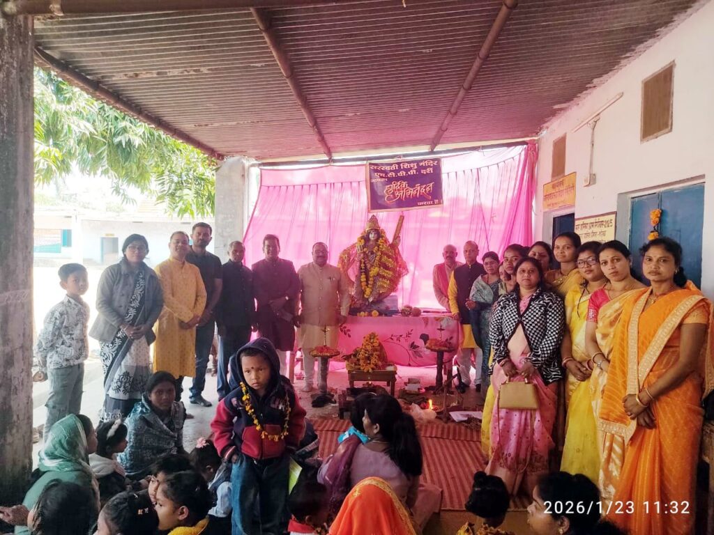 कोरबा,दर्री। सरस्वती शिशु मंदिर एचटीपीपी दर्री में शुक्रवार, 23 जनवरी 2026 को बसंत पंचमी के पावन अवसर पर श्रद्धा और उत्साह के साथ सरस्वती पूजन एवं विद्यारंभ संस्कार का आयोजन किया गया। इस अवसर पर तीन से छह वर्ष आयु वर्ग के बच्चों का वैदिक मंत्रोच्चार के बीच विद्यारंभ संस्कार संपन्न कराया गया।