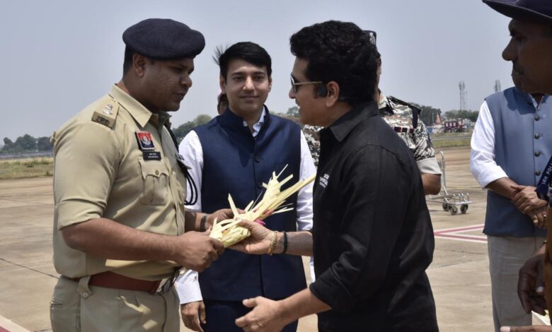 जगदलपुर, 22 अप्रैल 2026।भारत रत्न और भारतीय क्रिकेट टीम के पूर्व कप्तान मशहूर क्रिकेटर सचिन तेंदुलकर के बस्तर आगमन पर माँ दंतेश्वरी एयरपोर्ट जगदलपुर में वरिष्ठ अधिकारियों द्वारा आत्मीय स्वागत किया गया।