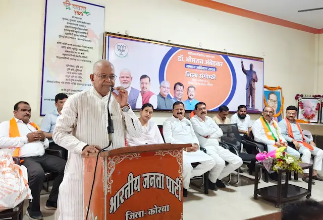 कोरबा। भारतीय जनता पार्टी, जिला कोरबा द्वारा भारत रत्न बाबा साहेब भीमराव आंबेडकर जी की जयंती के पावन अवसर पर संगोष्ठी का आयोजन किया गया। साथ ही समाज के वरिष्ठों का शाल व श्रीफल भेंट कर सम्मानित किया गया।भाजपा जिला कार्यालय, टी.पी. नगर, कोरबा में आयोजित इस कार्यक्रम में मुख्य वक्ता के रूप में पूर्व नेता प्रतिपक्ष धरमलाल कौशिक, उद्योग मंत्री लखन लाल देवांगन, जिलाध्यक्ष गोपाल मोदी, विधायक प्रेमचंद पटेल, महापौर संजू देवी राजपूत, जिला पंचायत अध्यक्ष डॉ पवन सिंह, वरिष्ठ पार्षद नरेंद्र देवांगन सहित कार्यक्रम में बड़ी संख्या में कार्यकर्ताओं की उपस्थिति रही।