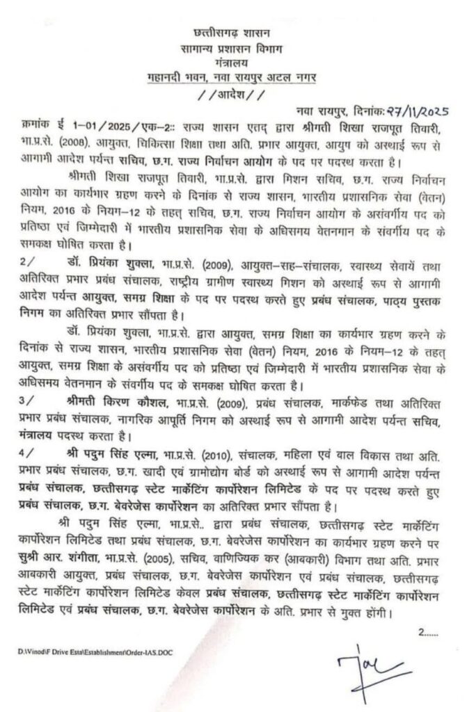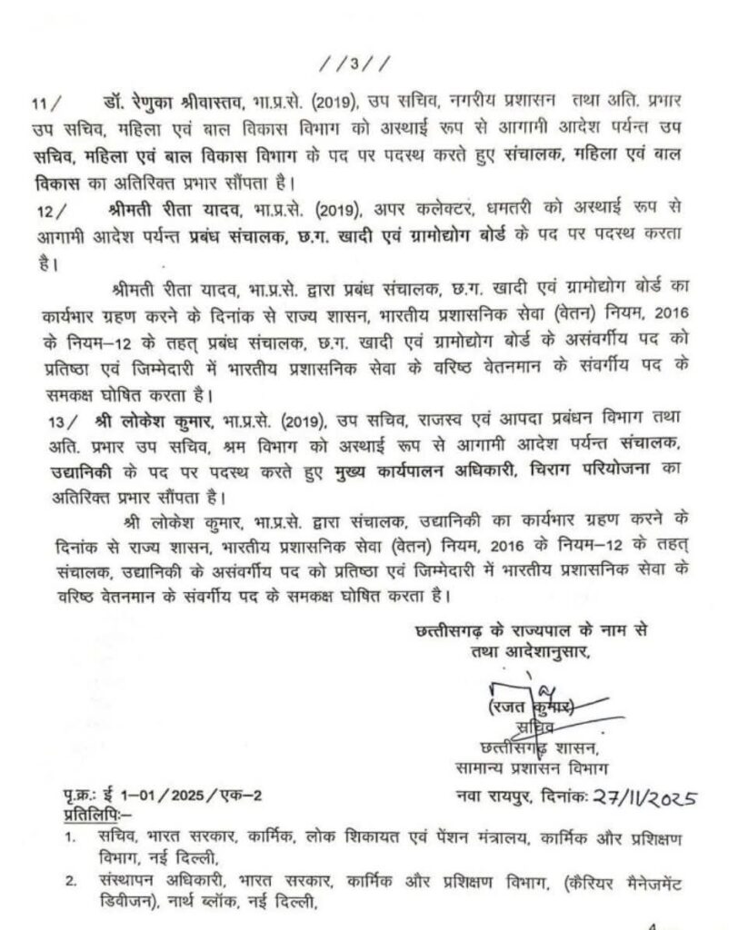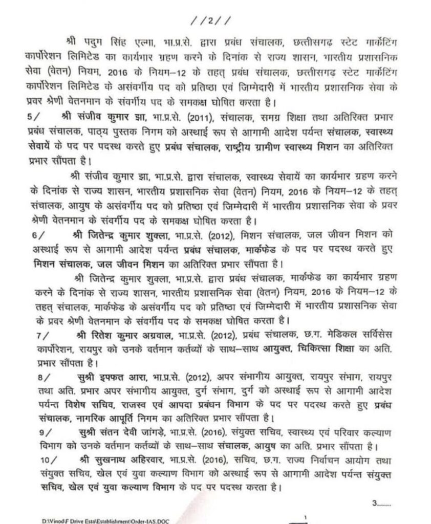 छत्तीसगढ़ में 13 आईएएस को नई जिम्मेदारी,देखें सूची..