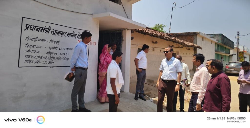 संचालक,प्रधानमंत्री आवास योजना ग्रामीण छत्तीसगढ़ एवं मनरेगा आयुक्त तारन प्रकाश सिन्हा ने जनपद पंचायत कटघोरा के ग्राम पंचायत धवईपुर में हितग्राही नन्हा सिंह एवं नीरेश बाई के आवास निर्माण का निरीक्षण किया। इस दौरान श्री सिन्हा ने आवास के हितग्राहियों से मुलाकात कर आवास निर्माण के बाद उनके जीवन में आए बदलाव के संदर्भ में चर्चा की । इसके साथ ही किश्त प्राप्ति एवं मनरेगा मजदूरी की जानकारी भी ली। श्री सिन्हा ने जनपद एवम् जिला स्तर के अधिकारियों को बरसात के पूर्व अधिक से अधिक आवास निर्माण पूर्ण कराने निर्देशित किया।