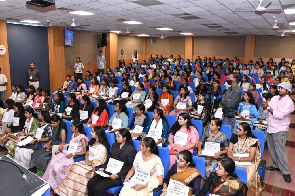 मॉक पार्लियामेंट की कार्यवाही के दौरान, महिला एवं बाल विकास मंत्री की भूमिका निभाते हुए एक युवा प्रतिनिधि ने सदन में महिला आरक्षण विधेयक प्रस्तुत किया। विधेयक पर हुई विस्तृत बहस और संसदीय विमर्श के पश्चात, इसे सदन में बहुमत से पारित कर दिया गया — जो इस आयोजन का एक ऐतिहासिक और उत्साहवर्धक क्षण रहा।