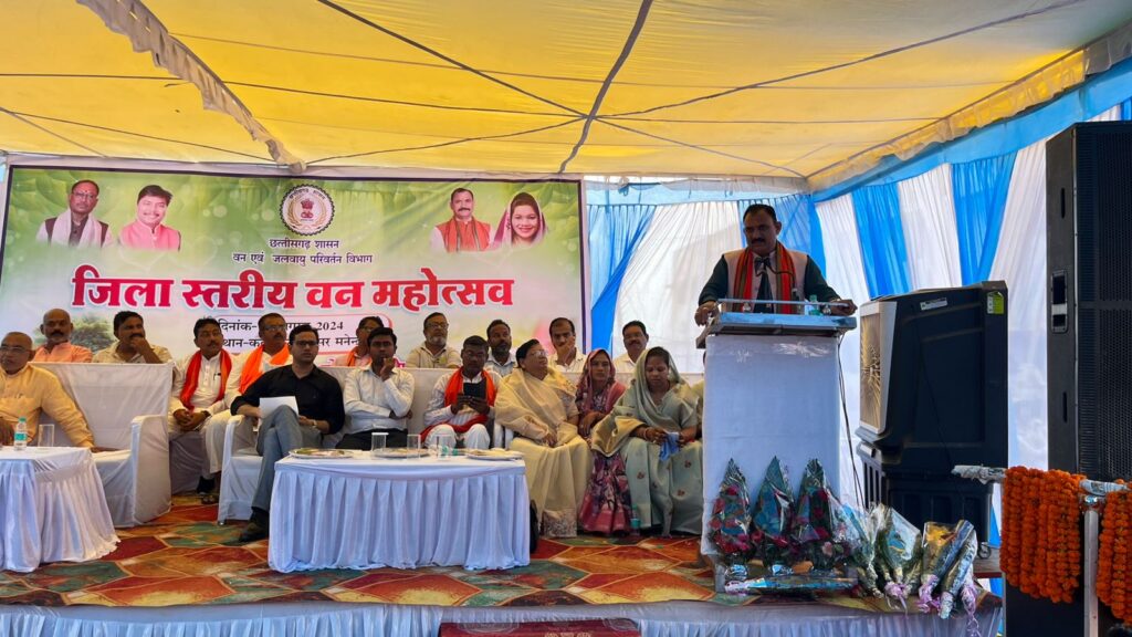 पर्यावरण एवं वानिकी की उपलब्ध बताते उन्होंनेे कहा कि मुख्यमंत्री विष्णुदेव साय ने गुरूघासीदास तमोर पिंगला के रूप में जिले को बड़ा उपहार दिया है। जिसकी स्वीकृति कैबिनेट में मिल चुकी है। यह भारत का तीसरा सबसे बड़ा टाइगर रिजर्व है। उन्होंने सभी को पौधारोपण एवं पर्यावरण की रक्षा करने के हरसंभव उपाय करने को कहा। पृथ्वी के पर्यावरण को स्वच्छ बनाए रखने के लिए वृक्षों का होना आवश्यक है। इसके लिए सभी लोगों को ज्यादा से ज्यादा वृक्षारोपण करना चाहिए। उन्होंने कहा कि केंद्र सरकार द्वारा ‘‘एक पेड़ मां के नाम‘‘ अभियान का शुभारंभ पर्यावरण एवं जलवायु को बेहतर करने के उद्देश्य से किया गया है। अतः सभी जिलेवासी इस अभियान में शामिल होकर इसे सफल बनाएं। पौधारोपण कार्य केवल वनक्षेत्र न किया जाये बल्कि वनक्षेत्र के बाहर निजी एवं शासकीय भूमियों जैसे आंगनबाड़ी, पुलिस चौंकी, उद्यान, अस्पताल, शमशान, शासकीय परिसर, छात्रावास, स्कूल परिसरों आदि स्थानों में भी किया जावेगा।