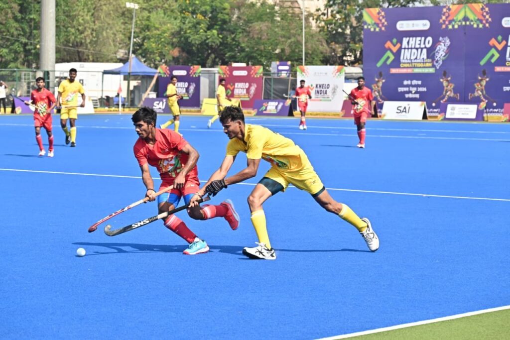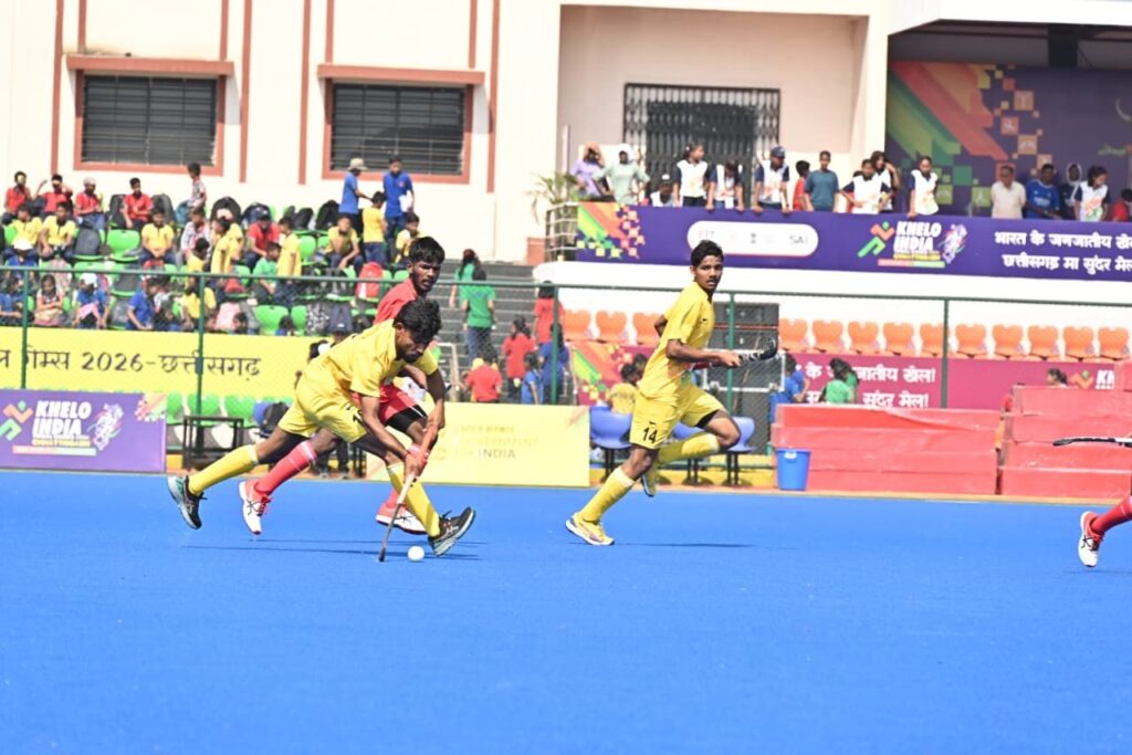 रायपुर, 1 अप्रैल 2026।खेलो इंडिया ट्राइबल गेम्स में आज रायपुर के सरदार वल्लभ भाई पटेल अंतरराष्ट्रीय हॉकी स्टेडियम में पुरुषों की हॉकी में छत्तीसगढ़ और मध्यप्रदेश के बीच तीसरे और चौथे स्थान के लिए मैच खेला गया। इसमें छत्तीसगढ़ ने मध्यप्रदेश को 14-6 से हरा कर कांस्य पदक जीता।