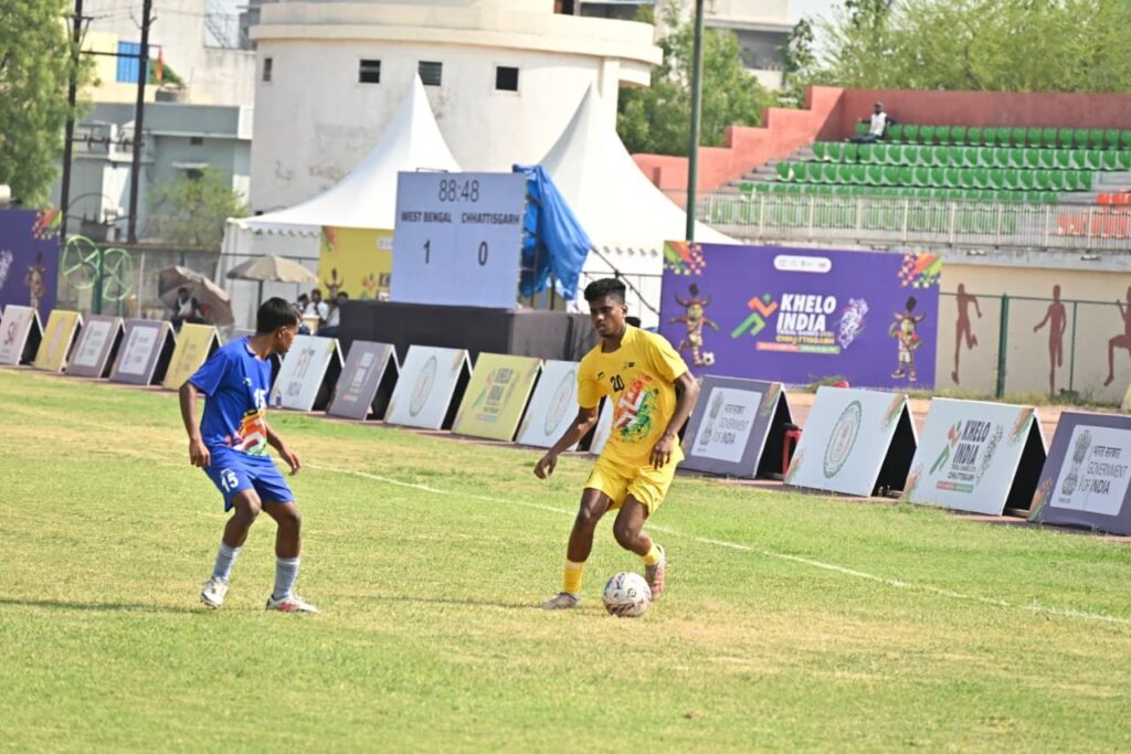 हॉफ टाइम तक पश्चिम बंगाल की टीम 1-0 की बढ़त बनाए हुए थी। छत्तीसगढ़ की टीम ने लगातार आक्रमण कर गोल उतारने की भरपूर कोशिश की, लेकिन कामयाबी नहीं मिली। खेल एवं युवा कल्याण विभाग के सचिव यशवंत कुमार, विभिन्न विभागों तथा भारतीय खेल प्राधिकरण के अधिकारी और खेलप्रेमी बड़ी संख्या में फाइनल मैच देखने के लिए मैदान में पहुंचे थे।