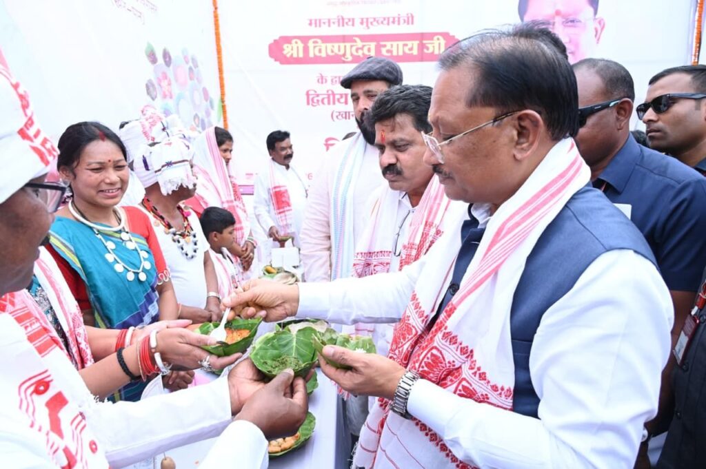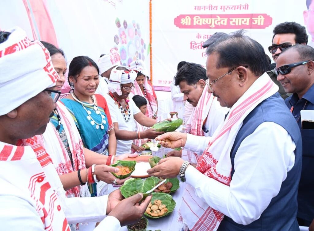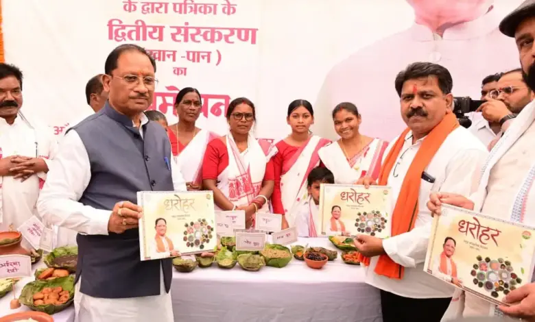 जशपुरनगर 18 अप्रैल 2026/ मुख्यमंत्री विष्णु देव साय और उप मुख्यमंत्री विजय शर्मा ने आज रणजीता स्टेडियम में जशपुर के आदिवासी संस्कृति खान पान,रहन सहन,लोक नृत्य और पारंपरिक पकवानों पर आधारित समृद्ध सांस्कृतिक विरासत खान पान धरोहर पत्रिका के द्वितीय संस्करण का विमोचन किया।