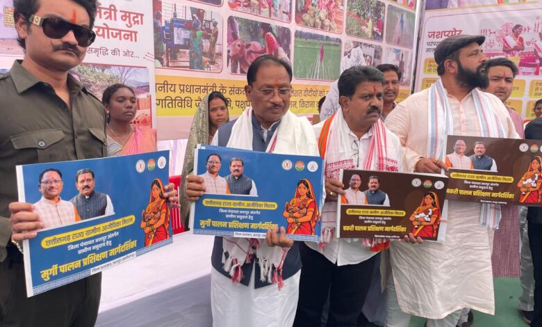 जशपुरनगर 17 अप्रैल 2026/ मुख्यमंत्री विष्णु देव साय और उप मुख्यमंत्री विजय शर्मा ने आज जशपुर रणजीता स्टेडियम में छत्तीसगढ़ राज्य ग्रामीण आजीविका मिशन के अंतर्गत जिला जशपुर में पशु सखियों के सशक्तीकरण के लिए बकरी एवं मुर्गी पालन प्रशिक्षण मार्गदर्शिका का विमोचन किया ।