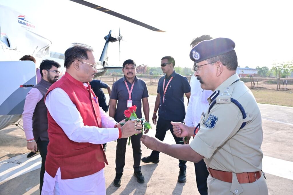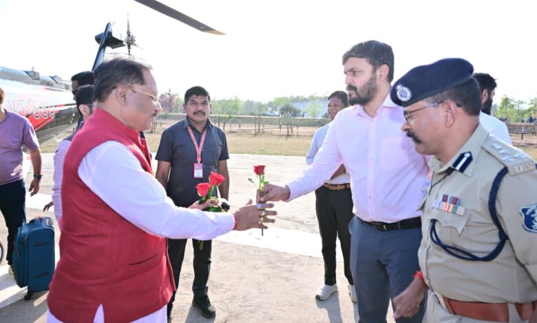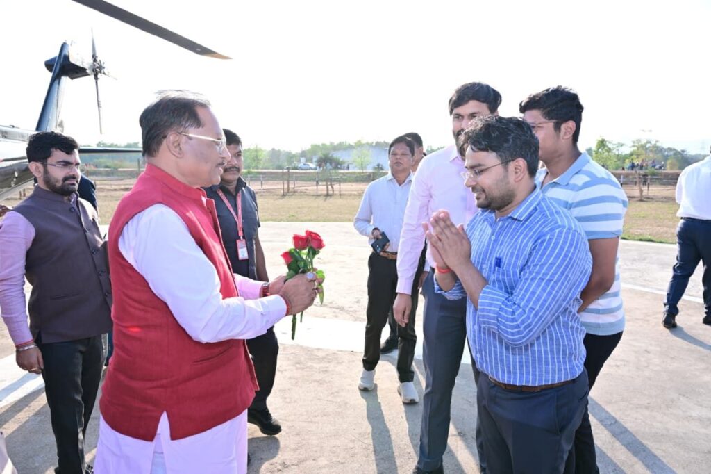 जशपुरनगर 26 मार्च 2026/मुख्यमंत्री विष्णुदेव साय आज अपने गृह ग्राम बगिया पहुंचे। मुख्यमंत्री श्री साय के आगमन पर बगिया हेलीपैड में आमजनों सहित अधिकारी कर्मचारियों ने आत्मीय स्वागत किया। इस अवसर पर कलेक्टर रोहित व्यास, एसएसपी लाल उमेद सिंह, जिला पंचायत सीईओ अभिषेक कुमार, डीएफओ शशिकुमार सहित सभी ने पुष्पगुच्छ भेंट कर मुख्यमंत्री का स्वागत किया।