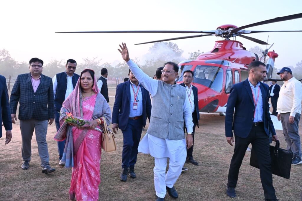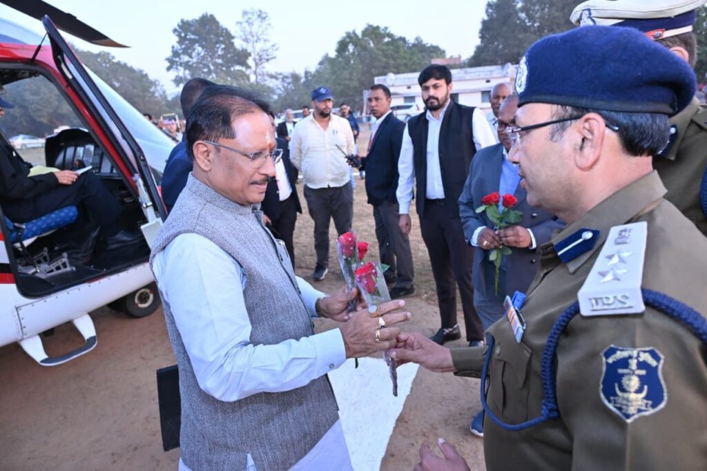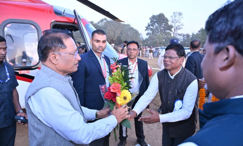 मुख्यमंत्री विष्णुदेव साय का फरसाबहार विकासखंड के पगुरा बहार हेलीपेड में हुआ आत्मीय स्वागत