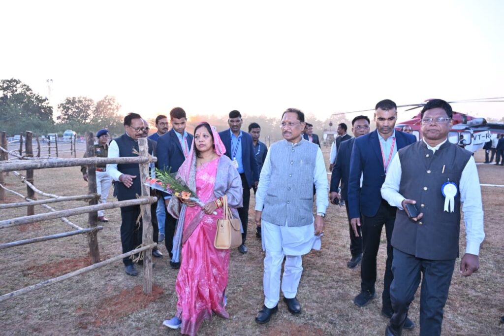 जशपुरनगर 28 दिसंबर 2025/ मुख्यमंत्री  विष्णुदेव साय और उनकी धर्मपत्नी  कौशल्या साय आज पगुरा बहार विकासखंड फरसाबहार पहुंचे।
