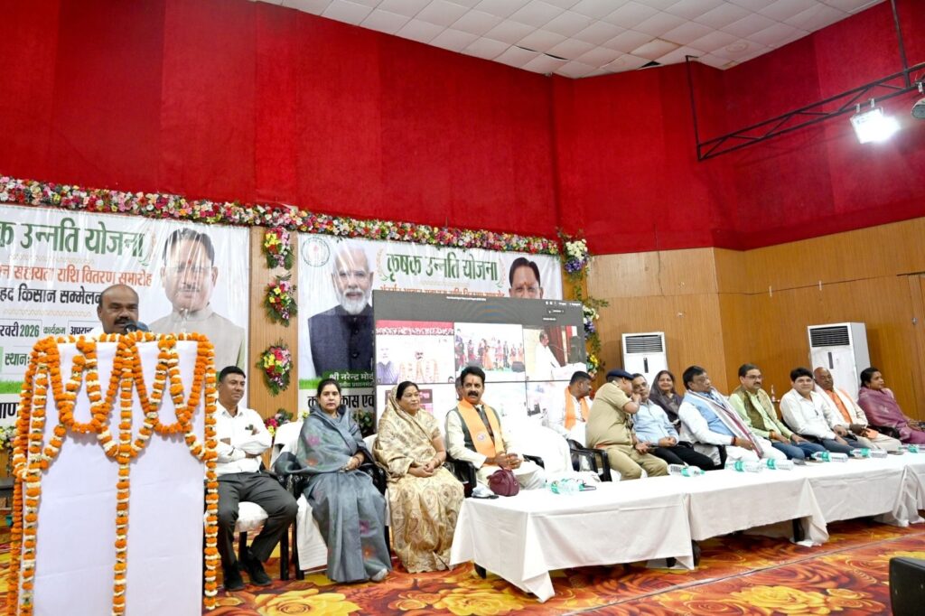 कृषक उन्नति योजना अंतर्गत जांजगीर-चांपा जिले के 1,18,927 किसानों के खातों में कुल 450 करोड़ 85 लाख 45 हजार 132 रुपये की राशि डीबीटी के माध्यम से सीधे अंतरित की गई। राशि सीधे बैंक खातों में पहुंचने से किसानों में उत्साह का माहौल है। यह आर्थिक सहायता किसानों को आगामी फसल की तैयारी, कृषि निवेश एवं घरेलू आवश्यकताओं की पूर्ति में सहायक होगी। इस अवसर पर जिला मुख्यालय स्थित ऑडिटोरियम भवन, जांजगीर में कार्यक्रम का आयोजन किया गया। कार्यक्रम में जांजगीर-चांपा विधायक ब्यास कश्यप, पूर्व नेता प्रतिपक्ष नारायण चंदेल, जिला पंचायत सदस्य राजकुमार साहू,प्रियंका पुष्पेंद्र सिंह, जनपद पंचायत अध्यक्ष अर्चना देवांगन, नगर पालिका के उपाध्यक्ष मोहन यादव,पुष्पेंद्र सिंह, इंजी रवि पांडेय,नंदिनी राजवाड़े,बिसुनलाल कश्यप, विवेका गोपाल,आशुतोष गोस्वामी, कलेक्टर जन्मेजय महोबे, पुलिस अधीक्षक विजय कुमार पांडेय सहित जनप्रतिनिधि, अधिकारी-कर्मचारी एवं बड़ी संख्या में किसानों की उपस्थिति रही। राज्य स्तरीय कार्यक्रम का सीधा प्रसारण भी किया गया, जिसे उपस्थित जनप्रतिनिधियों व किसानों ने देखा और मुख्यमंत्री का संबोधन सुना।