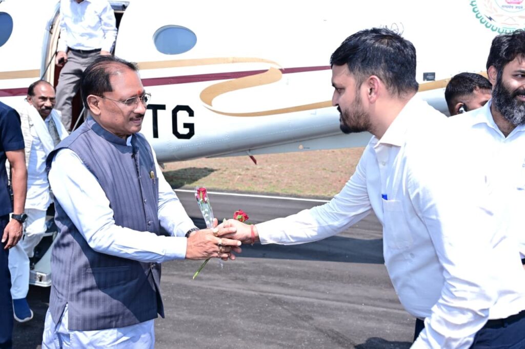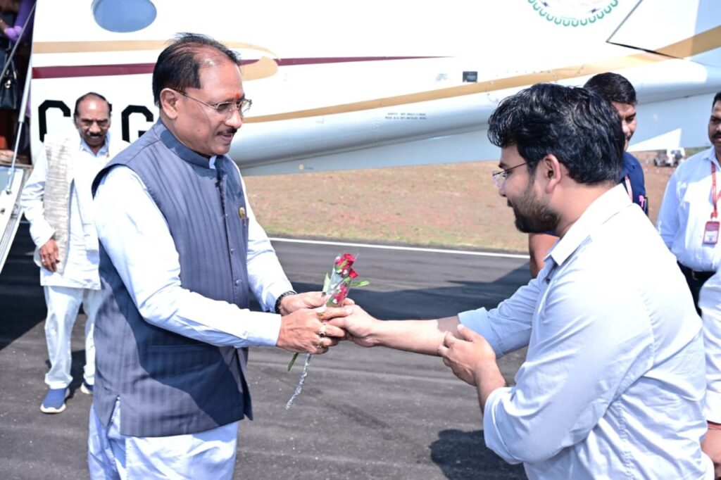 जशपुरनगर 21 अप्रैल 2026/ मुख्यमंत्री विष्णुदेव साय आगडीह एयरस्ट्रिप पहुंचे। जहां जनप्रतिनिधियों एवं अधिकारियों ने उनका आत्मीय स्वागत किया।