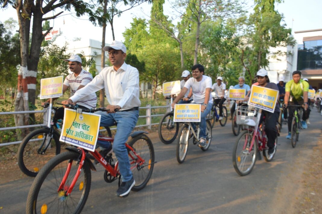 जिला प्रशासन द्वारा खेल एवं युवा कल्याण विभाग के माध्यम से कलेक्टोरेट परिसर से सीएसईबी फुटबाल ग्राउंड तक सायकल रैली निकाली गई।