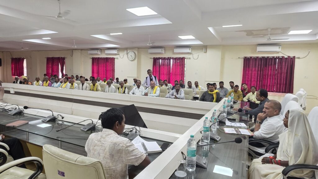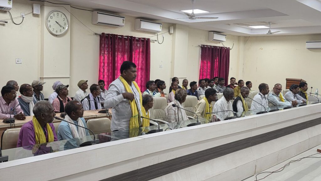 अम्बिकापुर, 08 अक्टूबर 2025/ कलेक्टर विलास भोसकर ने आज कलेक्टोरेट सभाकक्ष में परसा कोल ब्लॉक खनन परियोजना से प्रभावित ग्राम साल्ही, घाटबर्रा, फतेहपुर, हरिहरपुर, जनार्दनपुर एवं तारा के ग्रामीणों की बैठक ली। बैठक में भूमि विस्थापितों ने परियोजना से संबंधित मुआवजा, रोजगार एवं पुनर्वास नीति के पालन को लेकर अपनी 12 सूत्रीय मांगें रखीं।