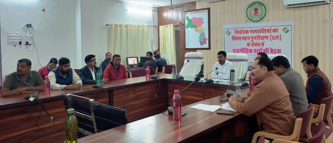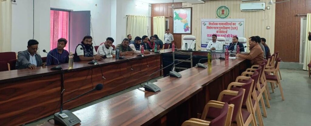 एमसीबी/24 नवम्बर 2025/ भारत निर्वाचन आयोग के निर्देशानुसार निर्वाचन नामावली के विशेष गहन पुनरीक्षण कार्यक्रम के तहत आज कलेक्ट्रेट सभाकक्ष में पंजीकृत राजनीतिक दलों की महत्वपूर्ण बैठक आयोजित हुई। बैठक की अध्यक्षता कलेक्टर एवं जिला निर्वाचन अधिकारी डी. राहुल वेंकट ने की, जबकि अपर कलेक्टर एवं उप जिला निर्वाचन अधिकारी अनिल कुमार सिदार ने संचालन एवं मार्गदर्शन प्रदान किया। बैठक में 01 जनवरी 2026 की संदर्भ तिथि पर आधारित विशेष पुनरीक्षण (SIR) की प्रगति से सभी प्रतिनिधियों को अवगत कराया गया तथा राजनीतिक दलों से आग्रह किया गया कि वे शीघ्र बूथ लेवल एजेंट (बीएलए) की नियुक्ति कर सूची उपलब्ध कराएं, ताकि पुनरीक्षण कार्य सुचारू रूप से आगे बढ़ सके।