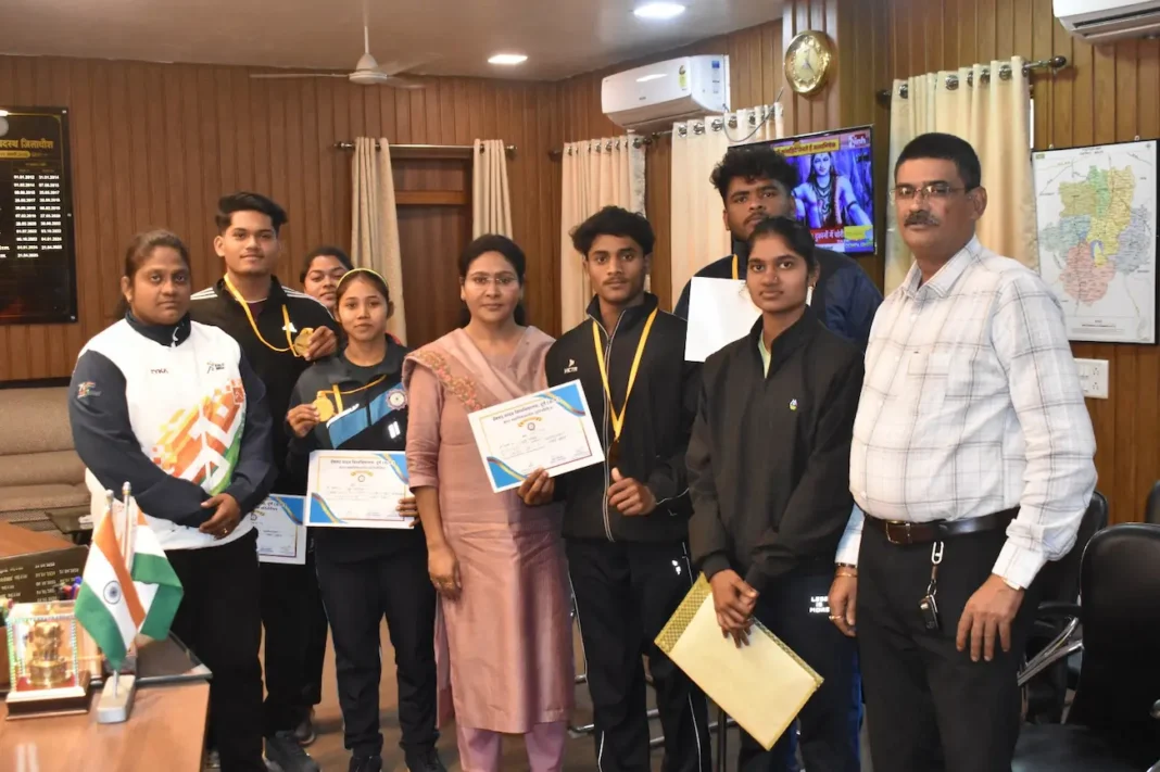 बालोद, 12 नवंबर 2025।कलेक्टर दिव्या उमेश मिश्रा ने आज संयुक्त जिला कार्यालय स्थित अपने कक्ष में अंतर महाविद्यालय प्रतियोगिता अंतर्गत वेटलिफ्टिंग प्रतियोगिता में जिले के विजेता खिलाड़ियों को सम्मानित किया। दल्लीराजहरा वेटलिफ्टिंग क्लब की कोच अनिता शिंदे ने बताया कि हेमचंद यादव विश्वविद्यालय दुर्ग अंतर्गत अंतर महाविद्यालय प्रतियोगिता का आयोजन 11 नवंबर को बेमेतरा में किया गया। उक्त आयोजन में जिले के दल्लीराजहरा स्थित एनसीजे महाविद्यालय के खिलाड़ियों ने वेटलिफ्टिंग प्रतियोगिता में भाग लिया। जिसमें मोनिका धु्रव, कृष नायक, मिनेश साहू, तुषार कुमार ने प्रथम स्थान हासिल कर जिले का नाम रोशन किया। उनकी इस उपलब्धि पर कलेक्टर श्रीमती मिश्रा ने आज उनके उपलब्धियों की सराहना करते हुए उन्हें हार्दिक बधाई एवं शुभकामनाएं दी। इस अवसर पर क्लब के अध्यक्ष कृष्णा सिंह मौजूद थे।