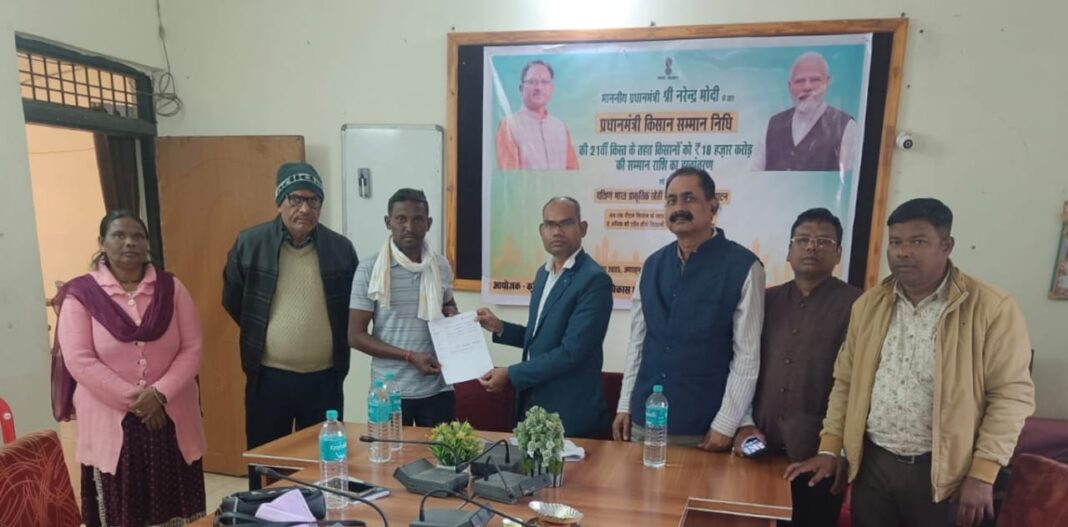 कोरबा 19 नवंबर 2025/प्रधानमंत्री नरेंद्र मोदी द्वारा आज पीएम किसान सम्मान निधि योजना की 21वीं किश्त के अंतर्गत देश के 9 करोड़ किसानों को 18 हजार करोड़ रुपये की सम्मान राशि का हस्तांतरण किया। इस राष्ट्रीय कार्यक्रम का सीधा प्रसारण कृषि विज्ञान केंद्र कटघोरा, कोरबा में किया गया। यह आयोजन कृषि विज्ञान केंद्र कोरबा तथा कृषि विकास, किसान कल्याण एवं जैव प्रौद्योगिकी विभाग कोरबा के संयुक्त तत्वाधान में सम्पन्न हुआ।