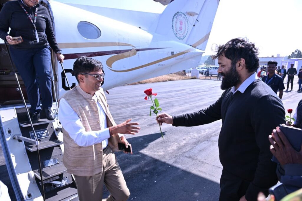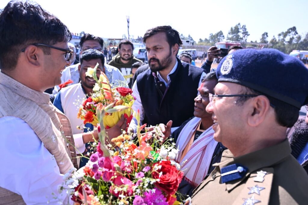 जशपुरनगर 26 दिसंबर 2025/ वित्त मंत्री और जिले के प्रभारी मंत्री ओपी चौधरी का आज जशपुर आगडीह हवाई अड्डे में आत्मीय स्वागत किया गया।