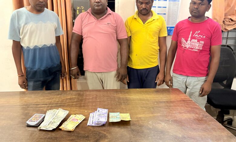 सूचना पर पुलिस टीम ने गवाह भरत उरांव एवं दिव्य साहू को साथ लेकर मौके पर रेड कार्रवाई की। पुलिस को देखकर कुछ जुआरी अंधेरे का फायदा उठाकर फरार हो गए, जबकि चार आरोपियों को मौके पर जुआ खेलते हुए रंगे हाथ गिरफ्तार किया गया।