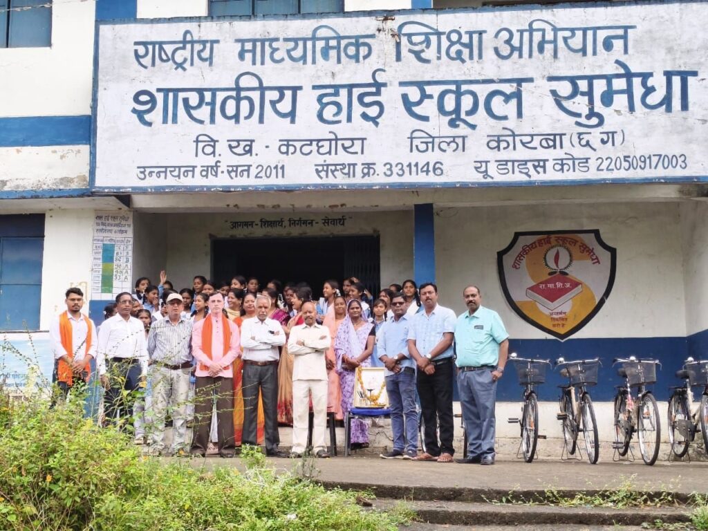 कोरबा। छत्तीसगढ़ शासन की महत्वाकांक्षी निःशुल्क सरस्वती सायकल वितरण योजना के तहत शासकीय उच्चतर माध्यमिक विद्यालय सुमेधा में कक्षा नवमी की 23 छात्राओं को योजना के तहत वार्ड 55 के पार्षद किशन केवट के मुख्य आतिथ्य में निःशुल्क साइकिल वितरण किया गया। साइकिल मिलने पर छात्राओं में उत्साह देखा गया।मुख्य अतिथि वार्ड पार्षद किशन ने विद्यार्थियों की उज्जवल भविष्य की कामना करते हुए कहा कि छात्राओं की शिक्षा को आगे बढ़ाने के लिए निःशुल्क सरस्वती साइकिल योजना भाजपा सरकार की एक महत्वाकांक्षी पहल है।इस योजना से ग्रामीण क्षेत्रों की छात्राएं अब समय पर विद्यालय पहुँच पा रही हैं और आत्मनिर्भर बन रही हैं।
