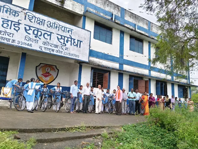 कोरबा। छत्तीसगढ़ शासन की महत्वाकांक्षी निःशुल्क सरस्वती सायकल वितरण योजना के तहत शासकीय उच्चतर माध्यमिक विद्यालय सुमेधा में कक्षा नवमी की 23 छात्राओं को योजना के तहत वार्ड 55 के पार्षद किशन केवट के मुख्य आतिथ्य में निःशुल्क साइकिल वितरण किया गया। साइकिल मिलने पर छात्राओं में उत्साह देखा गया।मुख्य अतिथि वार्ड पार्षद किशन ने विद्यार्थियों की उज्जवल भविष्य की कामना करते हुए कहा कि छात्राओं की शिक्षा को आगे बढ़ाने के लिए निःशुल्क सरस्वती साइकिल योजना भाजपा सरकार की एक महत्वाकांक्षी पहल है।इस योजना से ग्रामीण क्षेत्रों की छात्राएं अब समय पर विद्यालय पहुँच पा रही हैं और आत्मनिर्भर बन रही हैं।