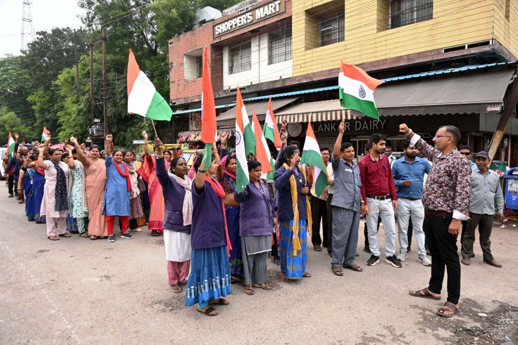 निगम के अधिकारी कर्मचारियों, स्वच्छता दीदियों, महिला स्वसहायता समूह की सदस्यों ने नागरिकों से किया आग्रह, अपने घरों व दुकानों में पूरे सम्मान के साथ फहराएं राष्ट्रीय ध्वज तिरंगा