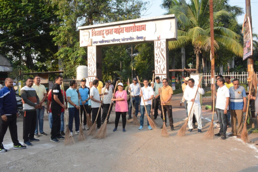 अधिकारी कर्मचारियों ने झाडू लगाकर दिया स्वच्छता का संदेश