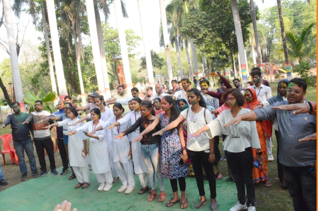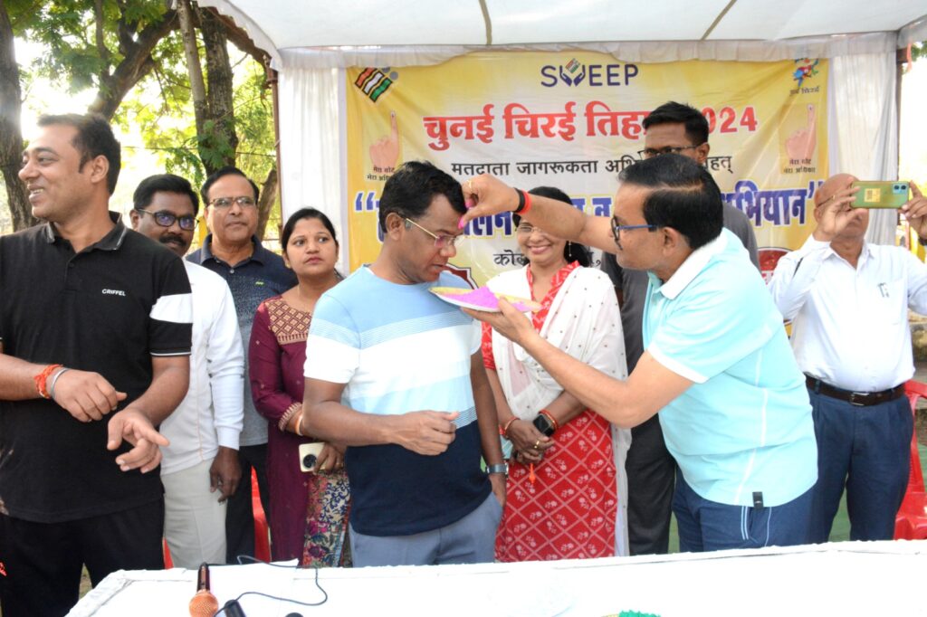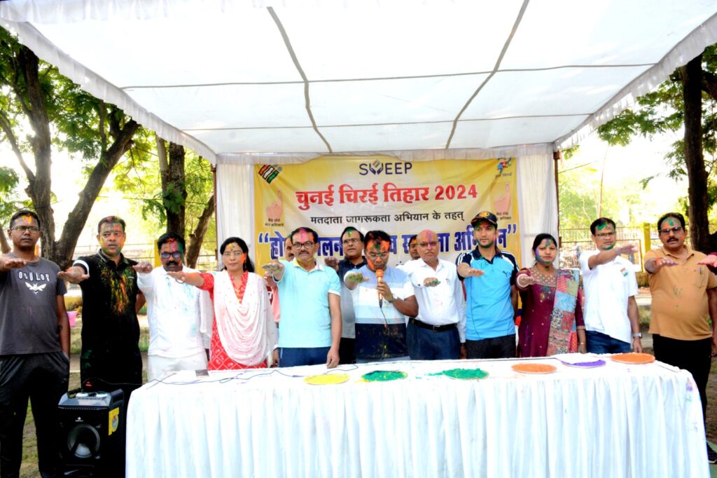 अधिकारी-कर्मचारियों ने रंग-गुलाल लगाकर किया मतदान करने को प्रेरित