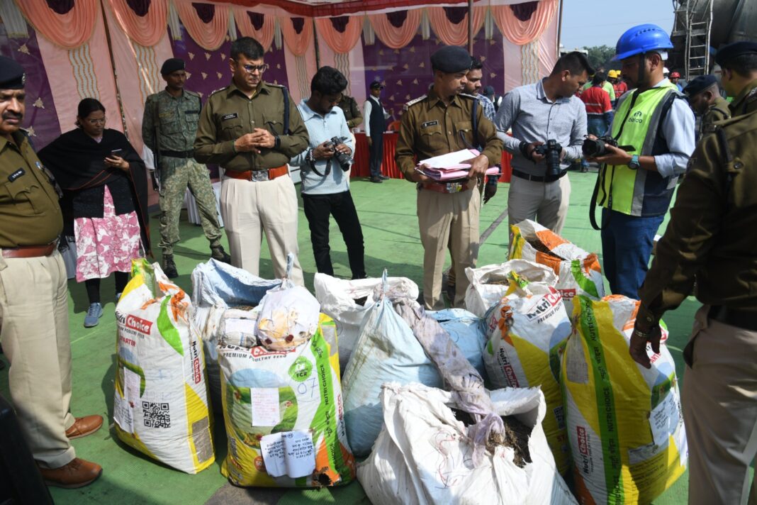 कोरबा 28 दिसंबर 2024/ पुलिस अधीक्षक  सिद्धार्थ तिवारी की उपस्थिति में आज एनडीपीएस एक्ट के अंतर्गत जिले के विभिन्न थानों में जब्त किये गये मादक पदार्थो (गांजा) को बाल्को पावर प्लांट के भट्ठी (फर्नेस) में विधिसम्मत नष्टीकरण की कार्यवाही की गई। उपरोक्त नष्टीकरण की कार्यवाही हेतु जिला स्तरीय औषधि व्ययन समिति का गठन किया गया है। जिसमें पुलिस, आबकारी , पर्यावरण सहित अन्य विभागों के अधिकारी शामिल है। नष्टीकरण की सम्पूर्ण कार्यवाही के दौरान एडिशनल एसपी  यू बी एस चौहान, नेहा वर्मा, पर्यावरण अधिकारी प्रमेन्द्र शेखर पांडेय, आबकारी अधिकारी आशा सिंह सहित पुलिस विभाग के अन्य अधिकारी उपस्थित थे।