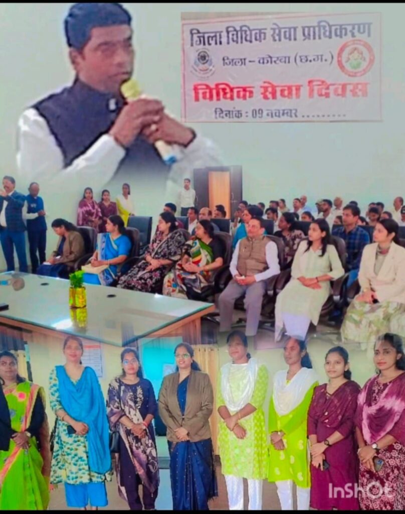 कोरबा 10 नवंबर 2025/राष्ट्रीय विधिक सेवा प्राधिकरण, नई दिल्ली के तत्वाधान, छ0ग0 राज्य विधिक सेवा प्राधिकरण बिलासपुर के निर्देशन एवं प्रधान जिला न्यायाधीश/अध्यक्ष संतोष शर्मा, जिला विधिक सेवा प्राधिकरण कोरबा के मार्गदर्शन में रविवार 09 नवम्बर को राष्ट्रीय विधिक सेवा दिवस के अवसर पर न्याय जागरूकता विधिक कार्यक्रमों की श्रृंखला आयोजित की गयी।