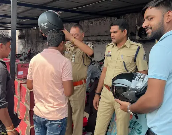 सड़क सुरक्षा को लेकर जागरूकता अभियान, बिना हेलमेट चालकों को किया प्रोत्साहित