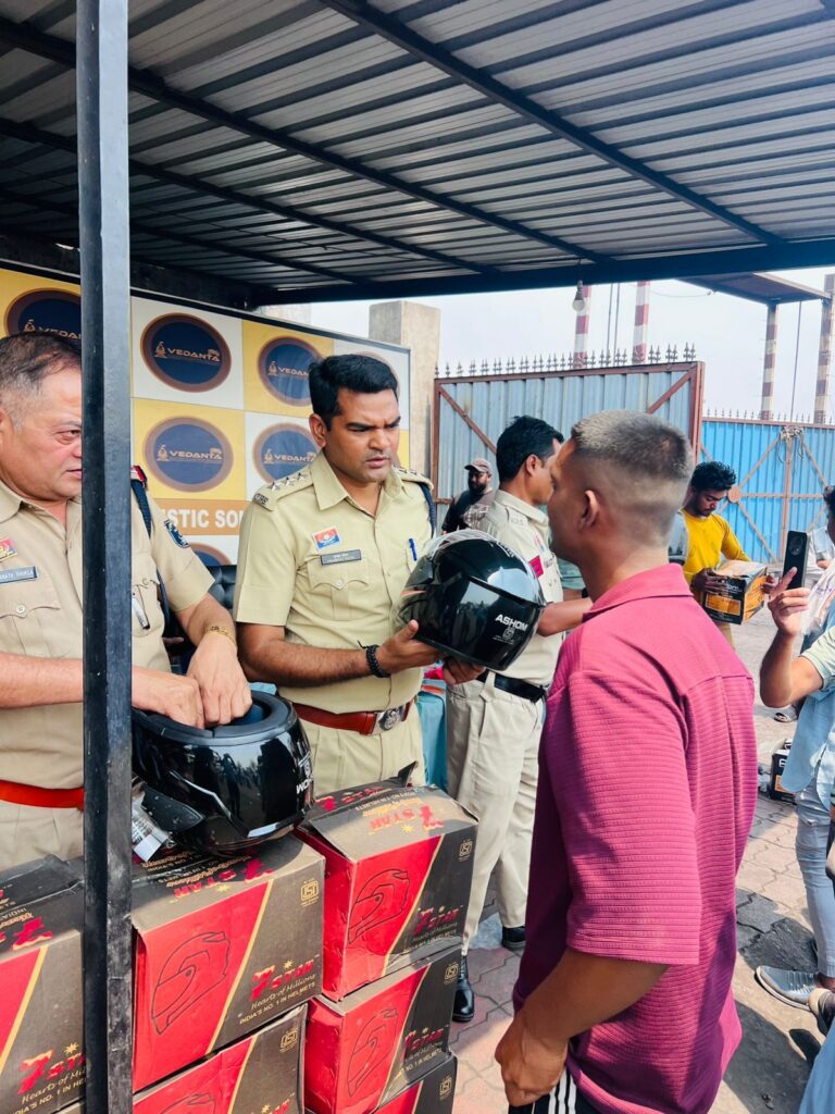 रायगढ़, 27 मार्च 2026 । वरिष्ठ पुलिस अधीक्षक शशि मोहन सिंह के दिशा निर्देशन, अतिरिक्त पुलिस अधीक्षक अनिल सोनी के मार्गदर्शन एवं एसडीओपी खरसिया प्रभात पटेल की पहल पर रामनवमी पर्व के अवसर पर खरसिया पुलिस द्वारा सड़क सुरक्षा को बढ़ावा देने के उद्देश्य से एक विशेष जागरूकता अभियान चलाया गया। इस दौरान ग्राम कुनकुनी में बिना हेलमेट दोपहिया वाहन चलाने वाले चालकों के बीच 200 हेलमेट का वितरण किया गया।