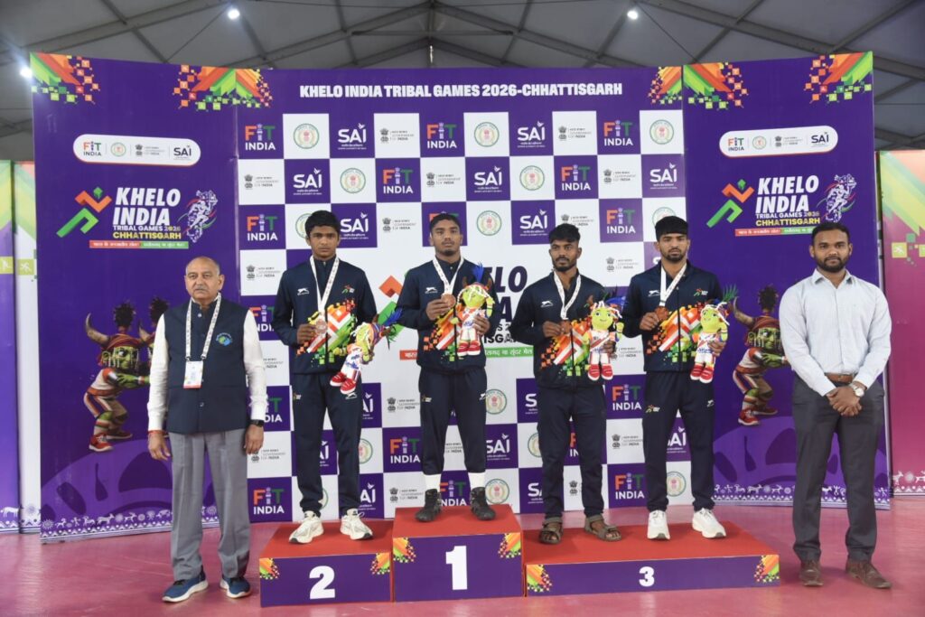अंबिकापुर,31मार्च,2026/छत्तीसगढ़ में आयोजित खेलो इंडिया ट्राइबल गेम्स 2026 अंतर्गत आज सरगुजा जिला मुख्यालय अम्बिकापुर के गांधी स्टेडियम में पिछले चार दिनों से जारी कुश्ती स्पर्धा का शानदार समापन आज हुआ। पूरे आयोजन के दौरान विभिन्न राज्यों से आए खिलाड़ियों के बीच जबरदस्त प्रतिस्पर्धा देखने को मिली। खिलाड़ियों ने अपनी कुशल तकनीक एवं रणनीति का प्रदर्शन कर पदक अपने नाम किए।