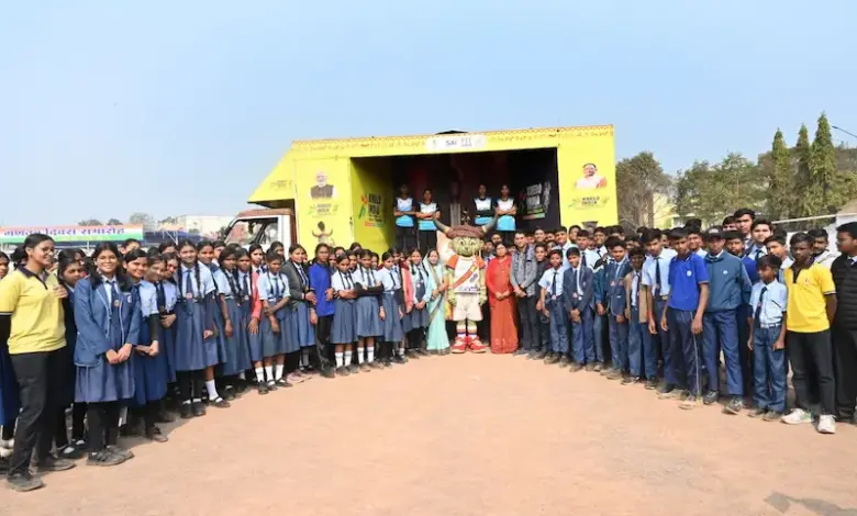 खेलो इंडिया ट्राइबल गेम्स: जिले में मशाल गौरव यात्रा रथ का भव्य स्वागत