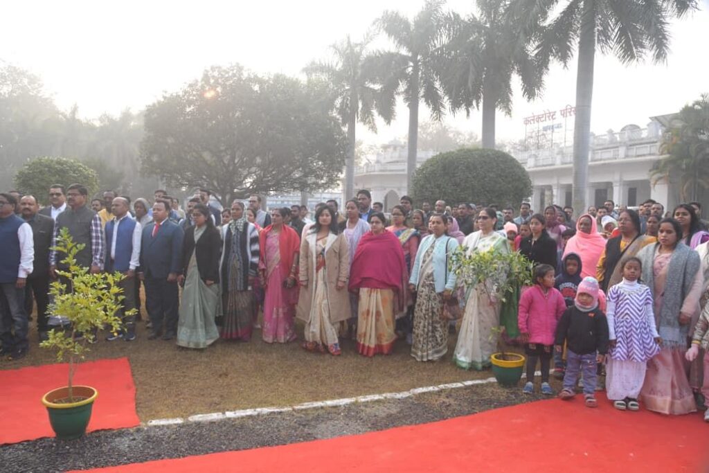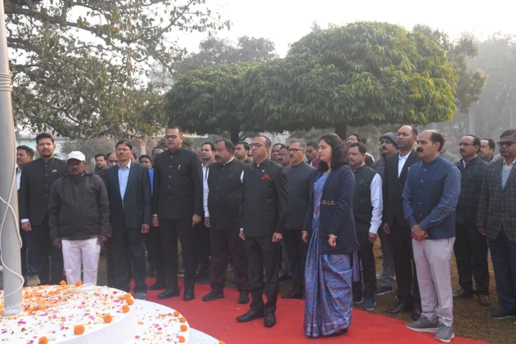 अंबिकापुर 26 जनवरी 2026/ 77वें गणतंत्र दिवस के अवसर पर जिला कलेक्टोरेट परिसर में कलेक्टर अजीत वसंत द्वारा प्रातः 7ः30 बजे राष्ट्रीय ध्वज फहराया गया। राष्ट्रपिता महात्मा गांधी की प्रतिमा पर कलेक्टर श्री वसंत सहित जिला अधिकारियों द्वारा माल्यार्पण कर नमन किया गया तथा राष्ट्रगान गाया गया।
