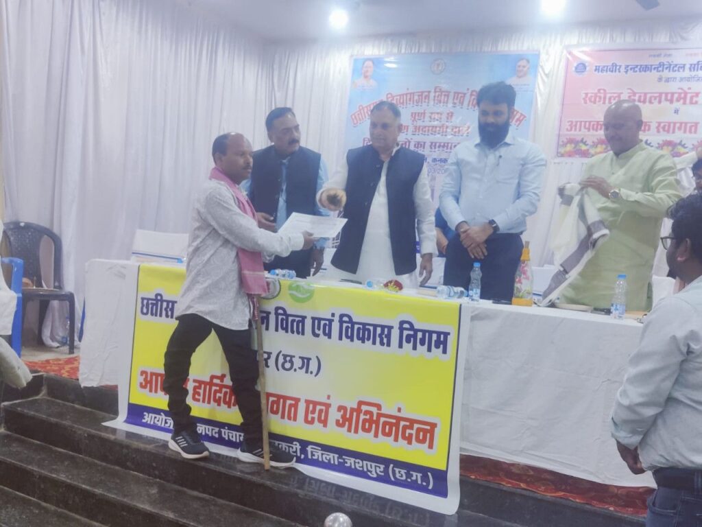 जिले में वित्त एवं विकास निगम द्वारा पूर्व में प्रदान किए गए ऋण की पूर्ण अदायगी करने वाले 38 दिव्यांगजनों को साल, श्रीफल एवं प्रमाण पत्र प्रदान कर सम्मानित किया गया। कार्यक्रम में उपस्थित अतिथियों ने स्टॉलों का अवलोकन कर प्रतिभागियों द्वारा निर्मित उत्पादों की सराहना की। इस अवसर पर मुख्यमंत्री के निज सहायक  तुलसी कौशिक, सलाहकार राजेश तिवारी, प्रबंधक पंकज वर्मा, भरत सिंह, जनपद सदस्य पिंकी गुप्ता सहित अन्य जनप्रतिनिधि उपस्थित रहे। कार्यक्रम के अंत में समाज कल्याण विभाग के उप संचालक धर्मेंद्र कुमार साहू द्वारा आभार व्यक्त किया गया।